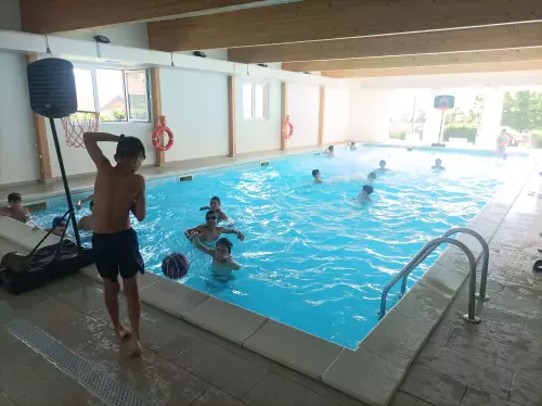 Momenti di gioco e relax in acqua, con attività organizzate e partite di water basket, ideali per divertirsi, rinfrescarsi e socializzare.